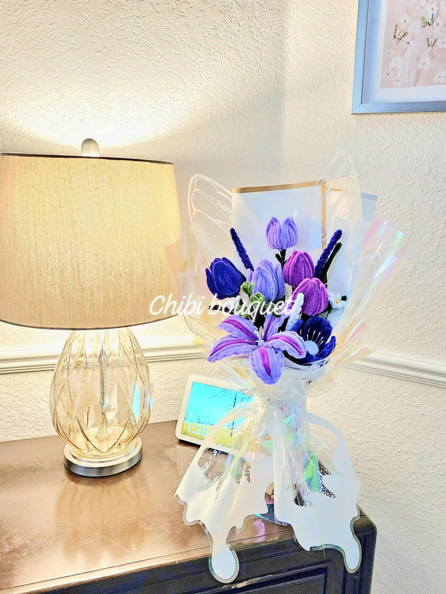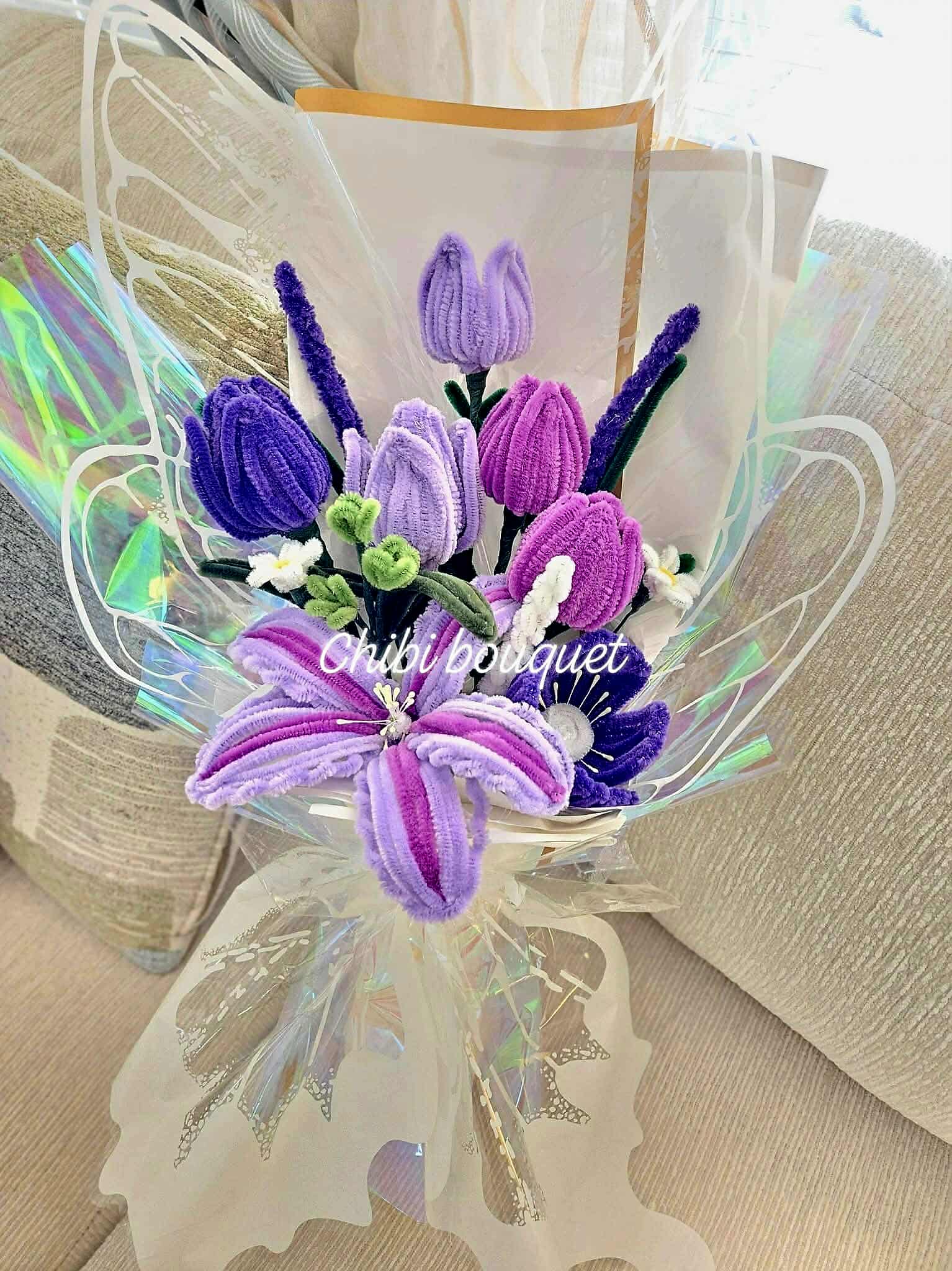 Handmade Pipe Cleaner Flower Bouquet_ purple Tulip and Lily